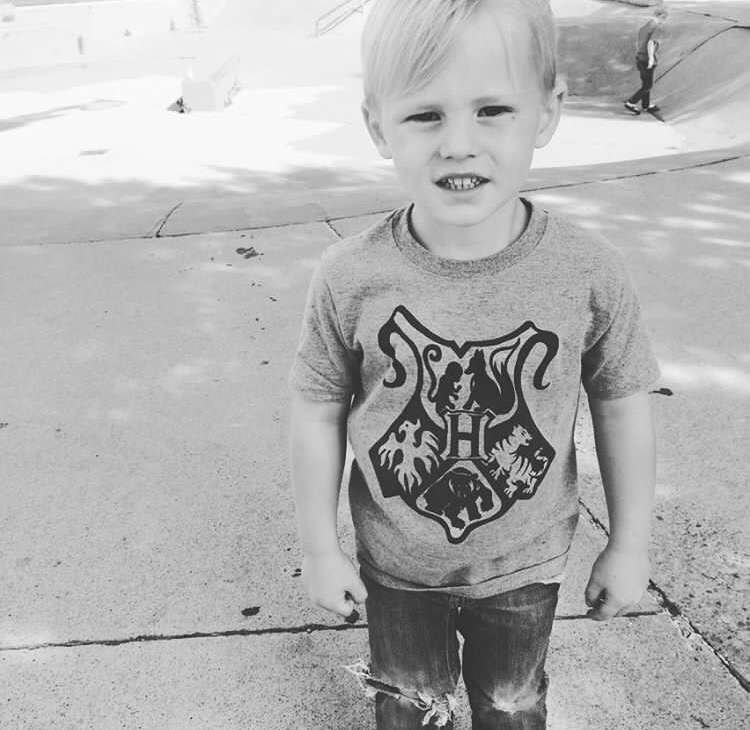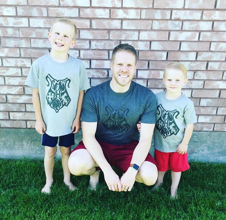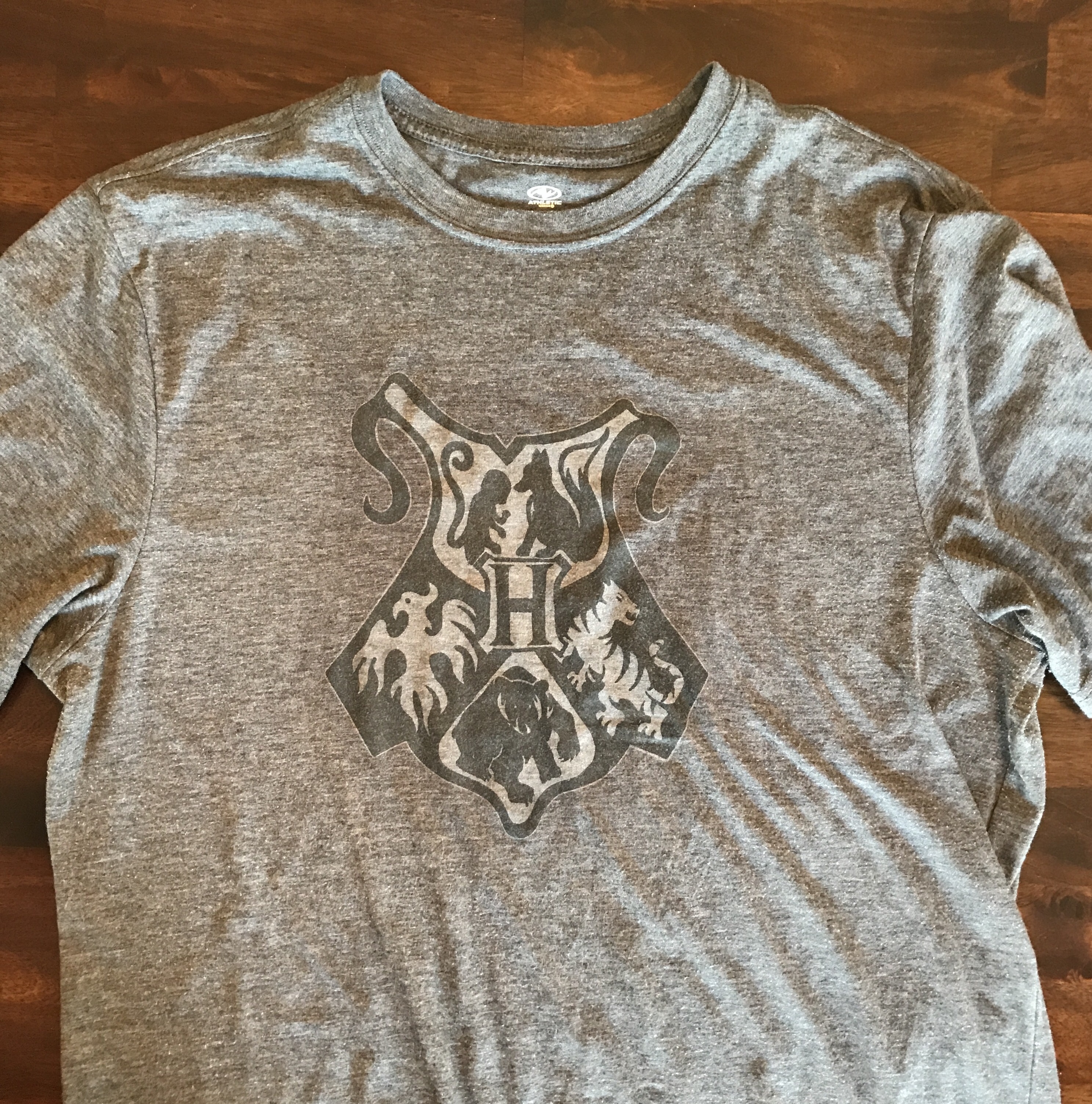 I’m a Harry Potter nerd, so the more Harry Potter the better! While Beth was on vacation visiting her sister this past spring, I decided to make t-shirts with a Harry Potter inspired family crest. So the inspiration was the well known Hogwarts crest (props to LittleFallingStar@deviantART):