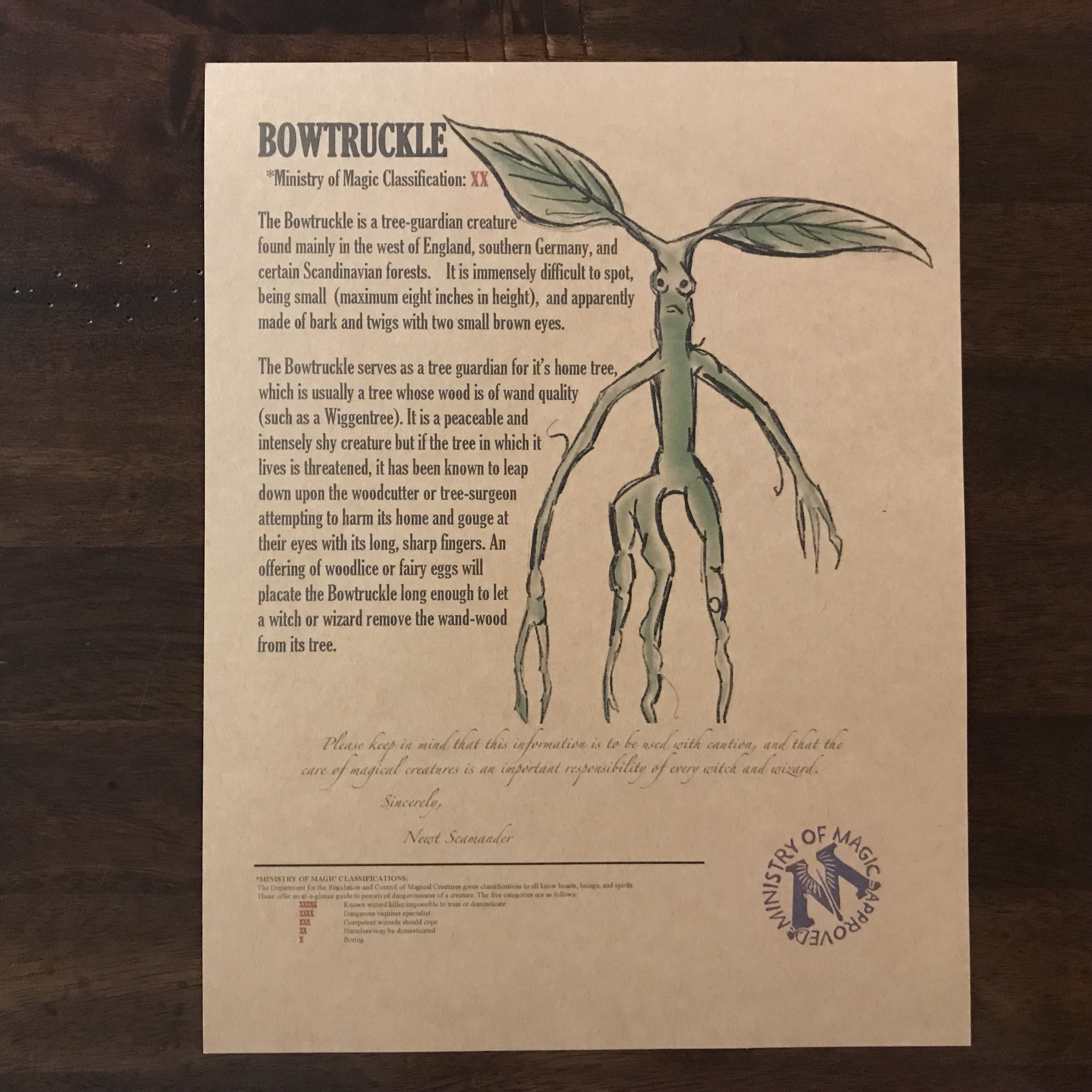 To go with the mini Bowtruckle they’ll be making, I made a little handout about these little creatures. Here’s the video of part of the process: