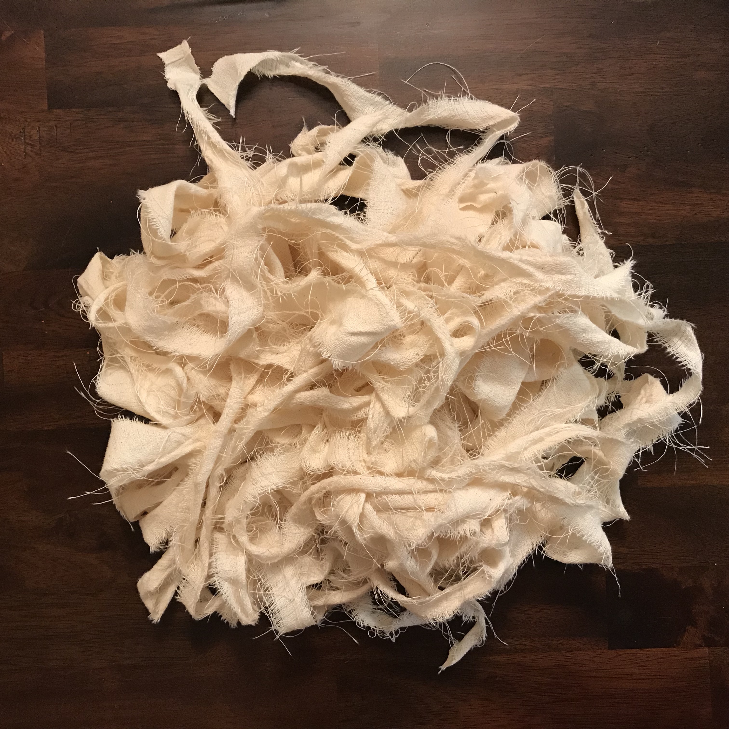 Then I tore up some old fabric for the wrapping.