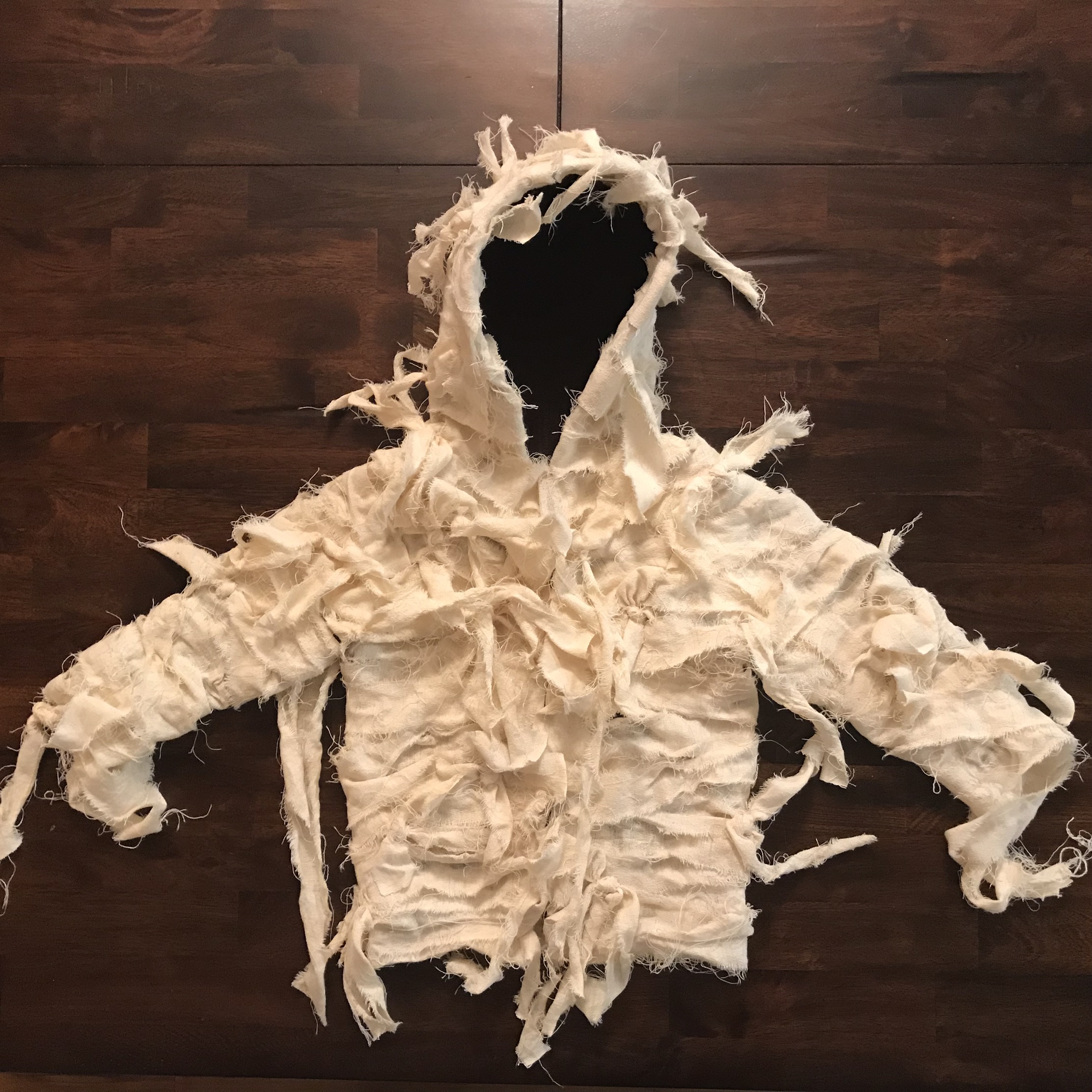 The shirt ended up being too complicated so I actually just used an old jacket (which was better because I didn’t have to mess with a zipper or Velcro, and the hood was kind of cool!)