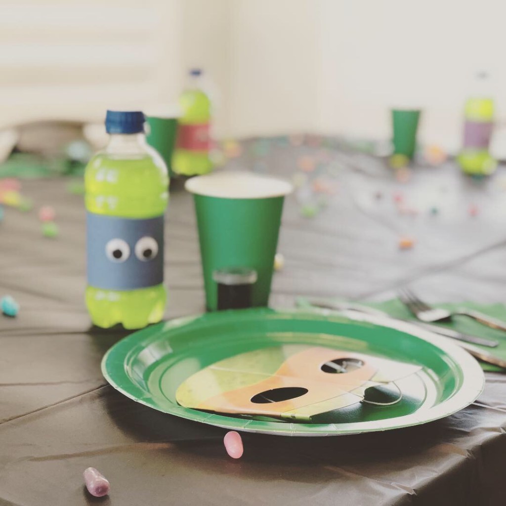 The entire party was brought you you by the Dollar Tree store!The ninja drinks were a big hit! The Dollar Tree Halloween eyes were perfect for a ninja! The secrete ooze juice was a hit as well!The masks were a great touch!He was a happy camper that day!